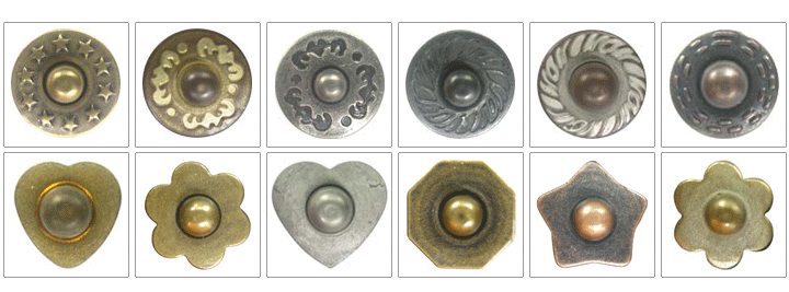 撞釘是作為口袋周圍和側(cè)面接縫等處的強度補強?!羔敗故窃谕鈧?cè)的裝飾部分,而「扣」則是置于布的內(nèi)側(cè)用來固定。所有的YKK釘扣組合皆最大程度得結(jié)合了強度及高質(zhì)量的外觀。可適用于個性化的標志設(shè)計,采用多種多樣的金屬并結(jié)合相匹配的表面處理以提高它們的外觀和性能。